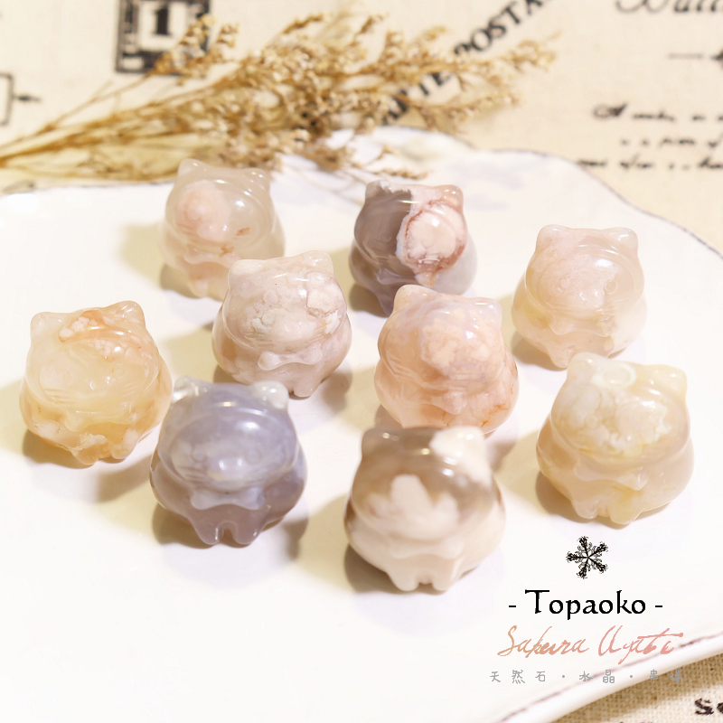 《晶格格的多寶格》天然A級馬達加斯加透體櫻花瑪瑙蝴蝶結海豹貓擺件【RF348】約24-26.5mm裸石單珠天然石手作