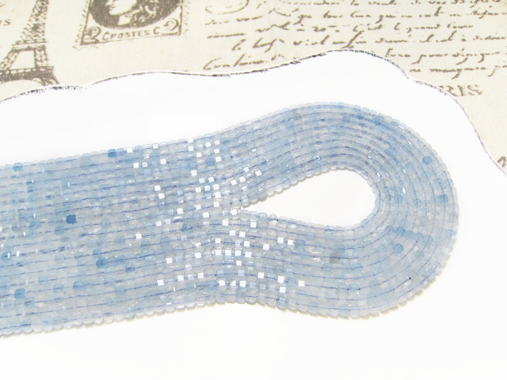 《晶格格的多寶格》天然A級巴西高透體海藍寶石切面方形.方塊珠【F3790】約2.8-3.2mm手作串珠飾品天然石DIY