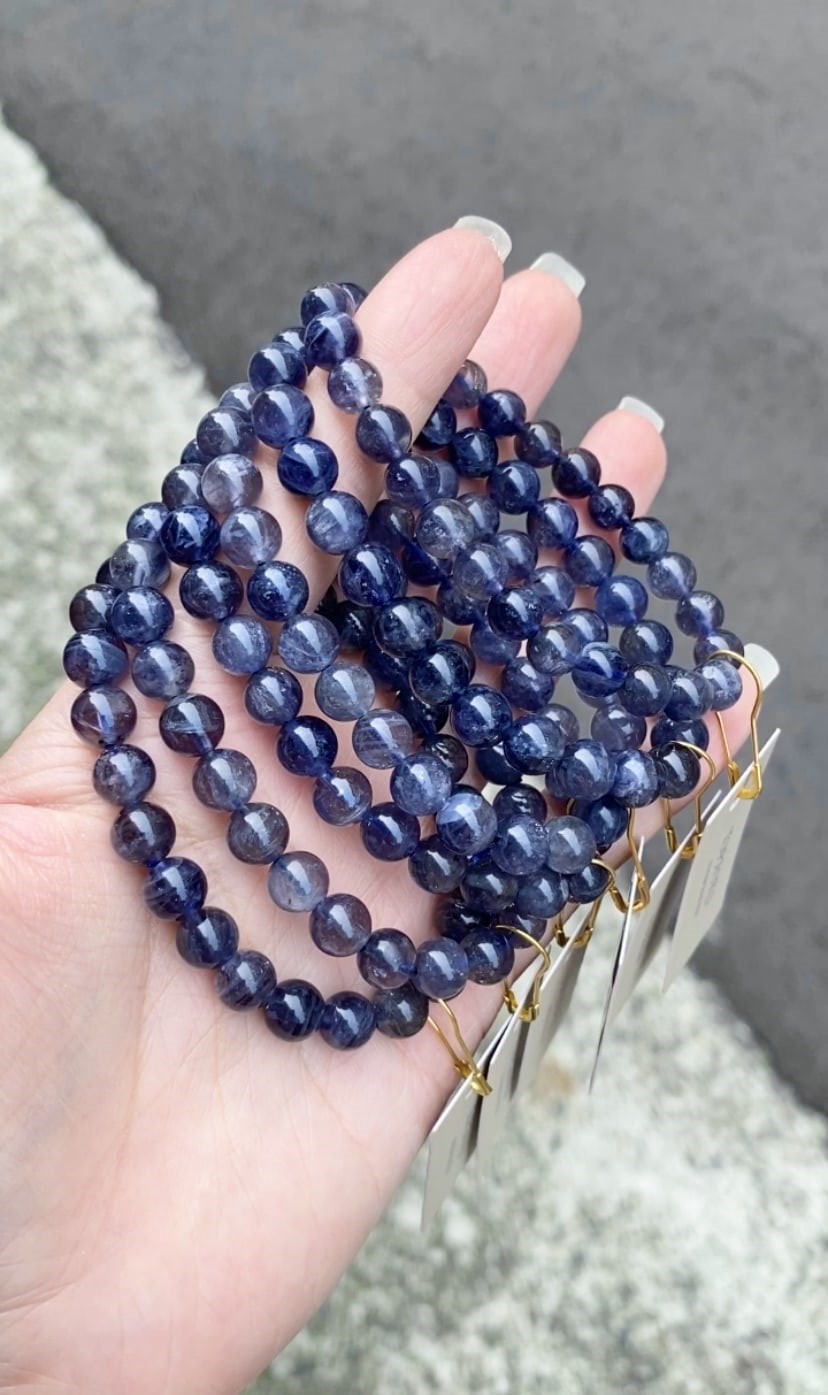 《晶格格的多寶格》天然A級斯里蘭卡高透體金屬強光雙色堇青石手珠【A6684.A6685】約7-8mm #隨機出貨贈精美盒