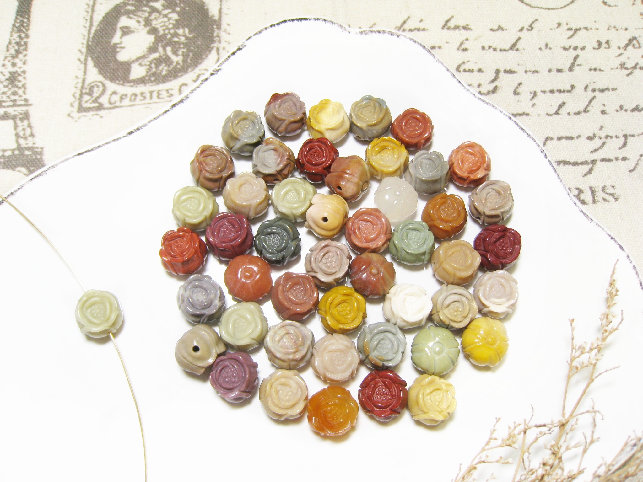 ●天然A級莫蘭迪色阿拉善瑪瑙精雕玫瑰孔珠