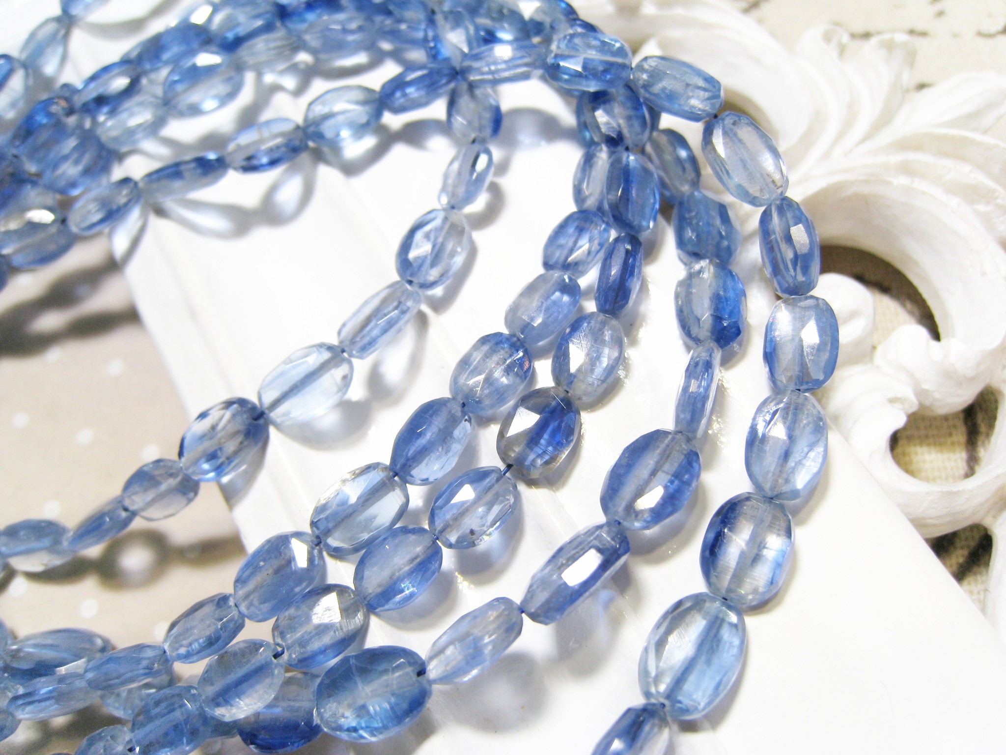 《晶格格的多寶格》輕珠寶手工珠.收藏級!天然印度高透藍晶石切面扁橢圓珠【F2569】長約5-9.2mm手作天然石單珠飾品