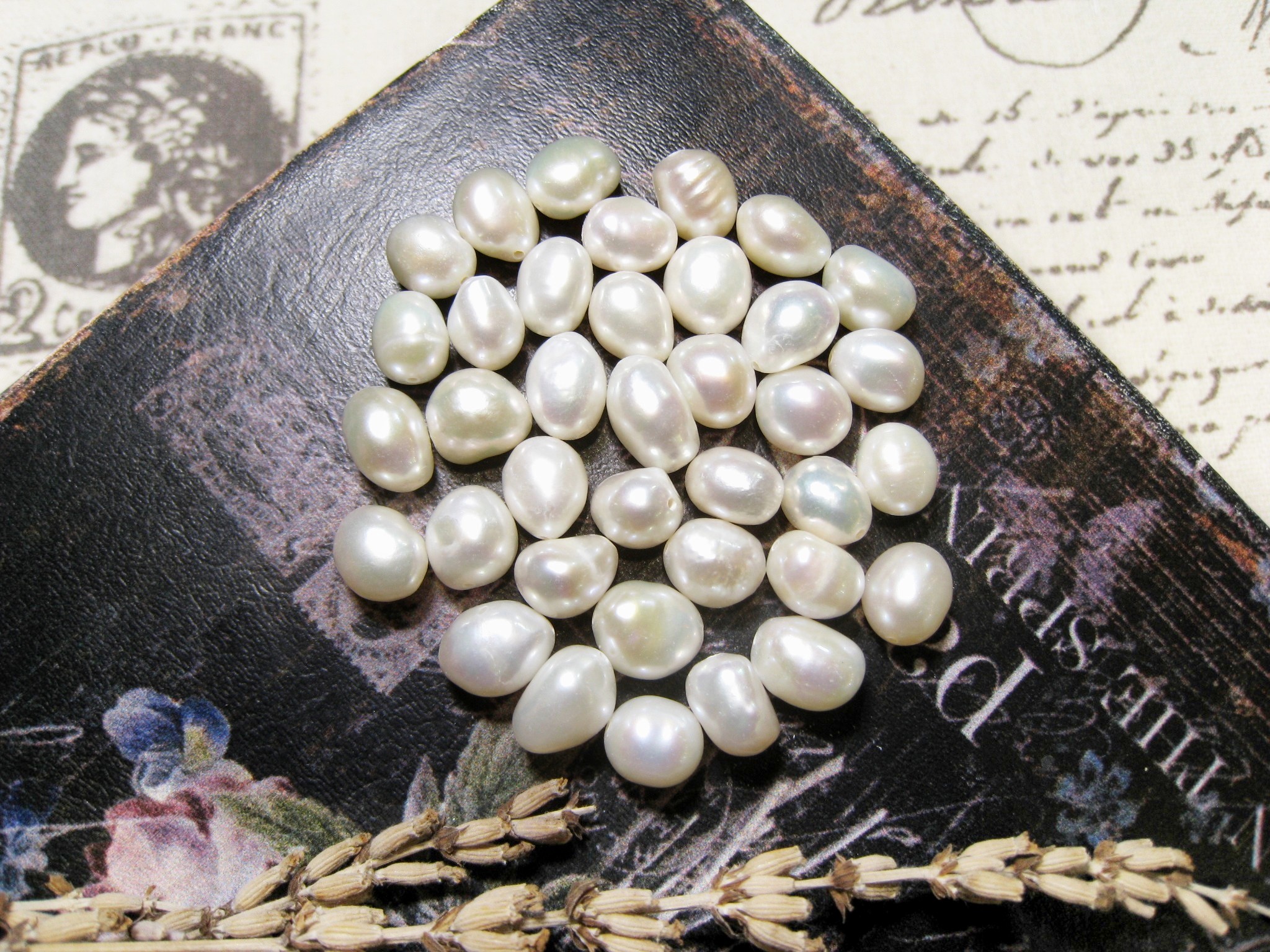 《晶格格的多寶格》天然A級強光白色飽滿隨形米形淡水珍珠【F2538】寬7-8.2mm條珠手作飾品串珠天然石