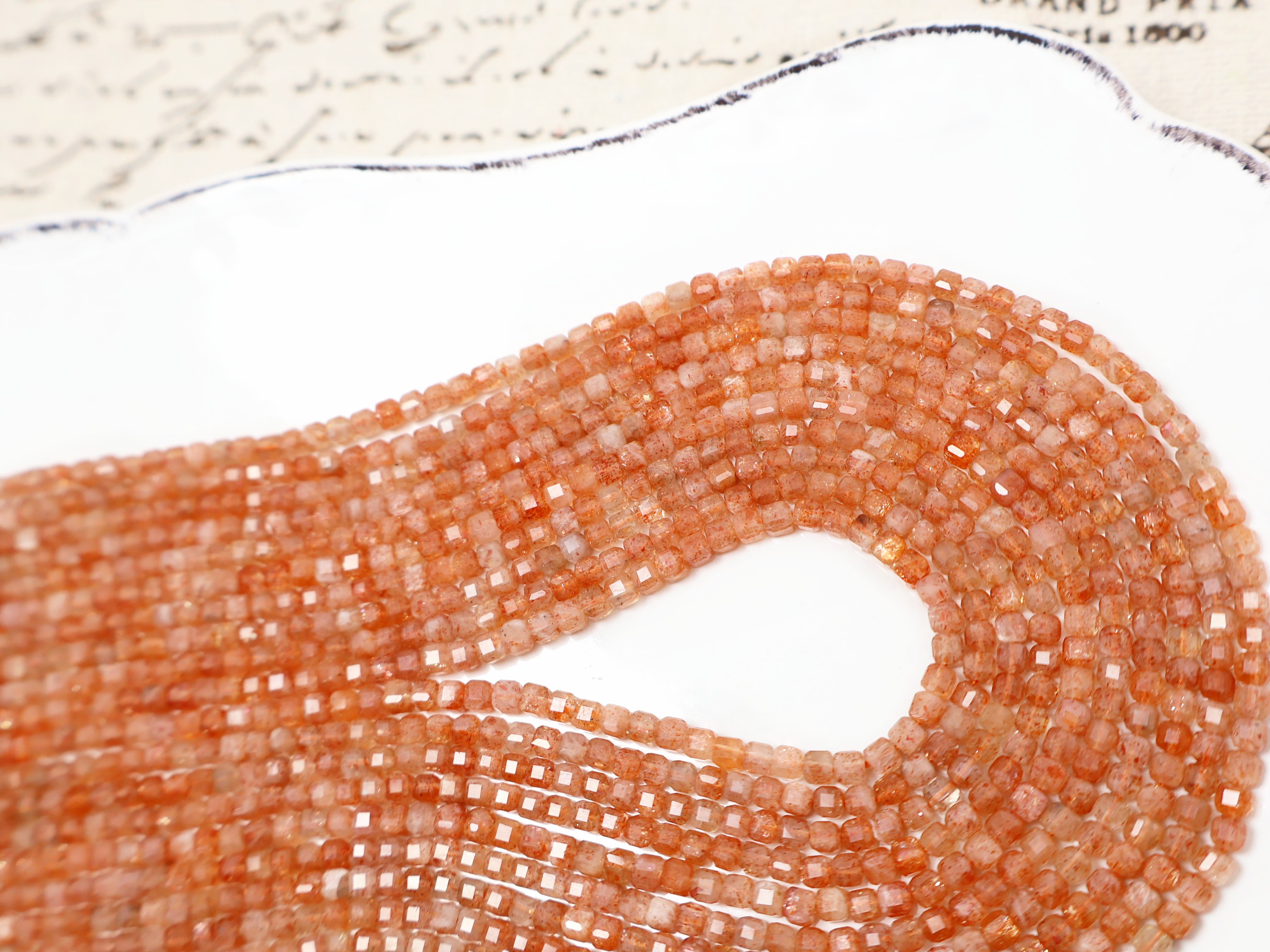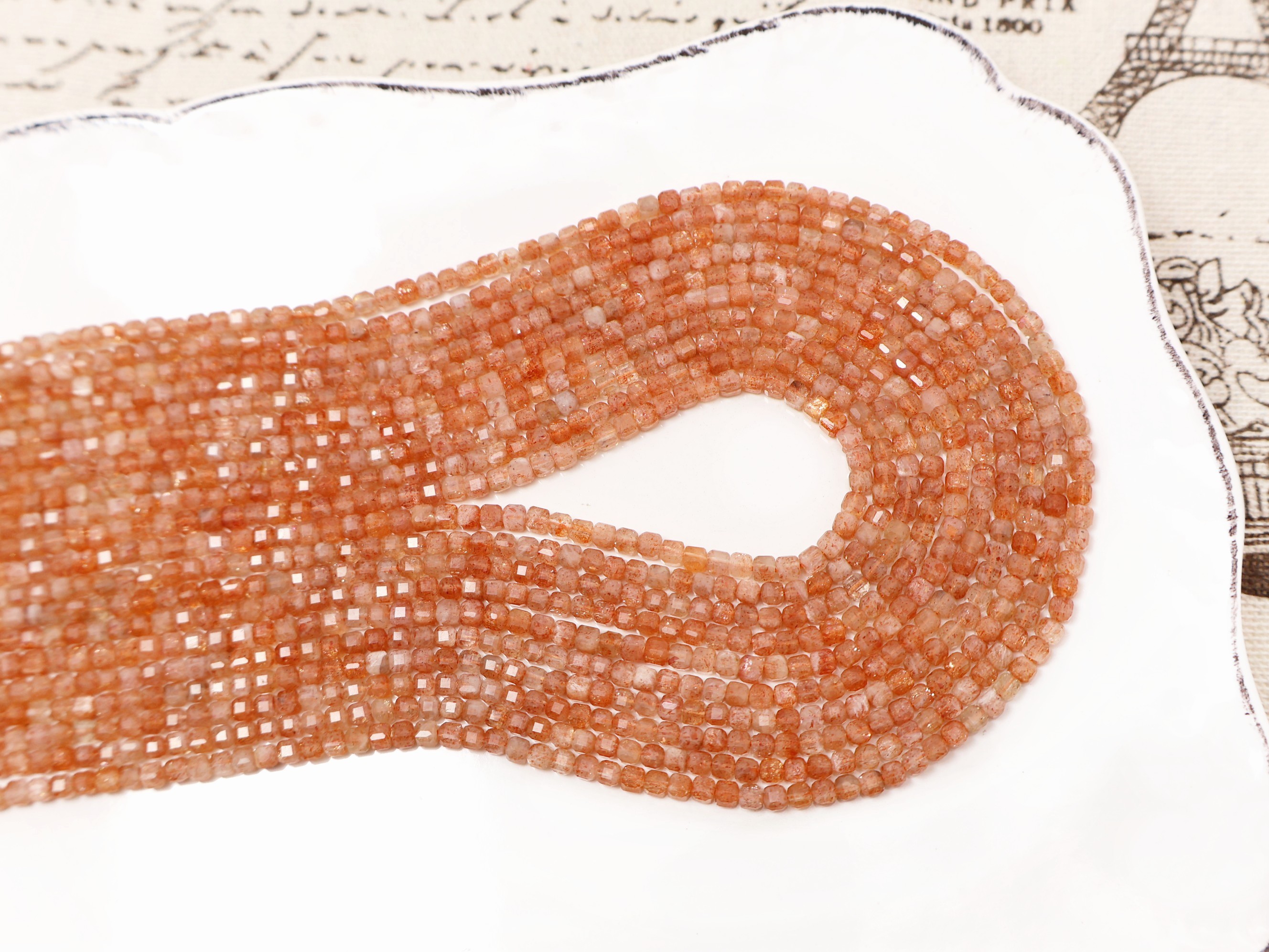 《晶格格的多寶格》天然A級巴西高透體火焰橘金太陽石方形.方塊切面珠【H1063】約2.9-3.4mm手作串珠飾品天然石D