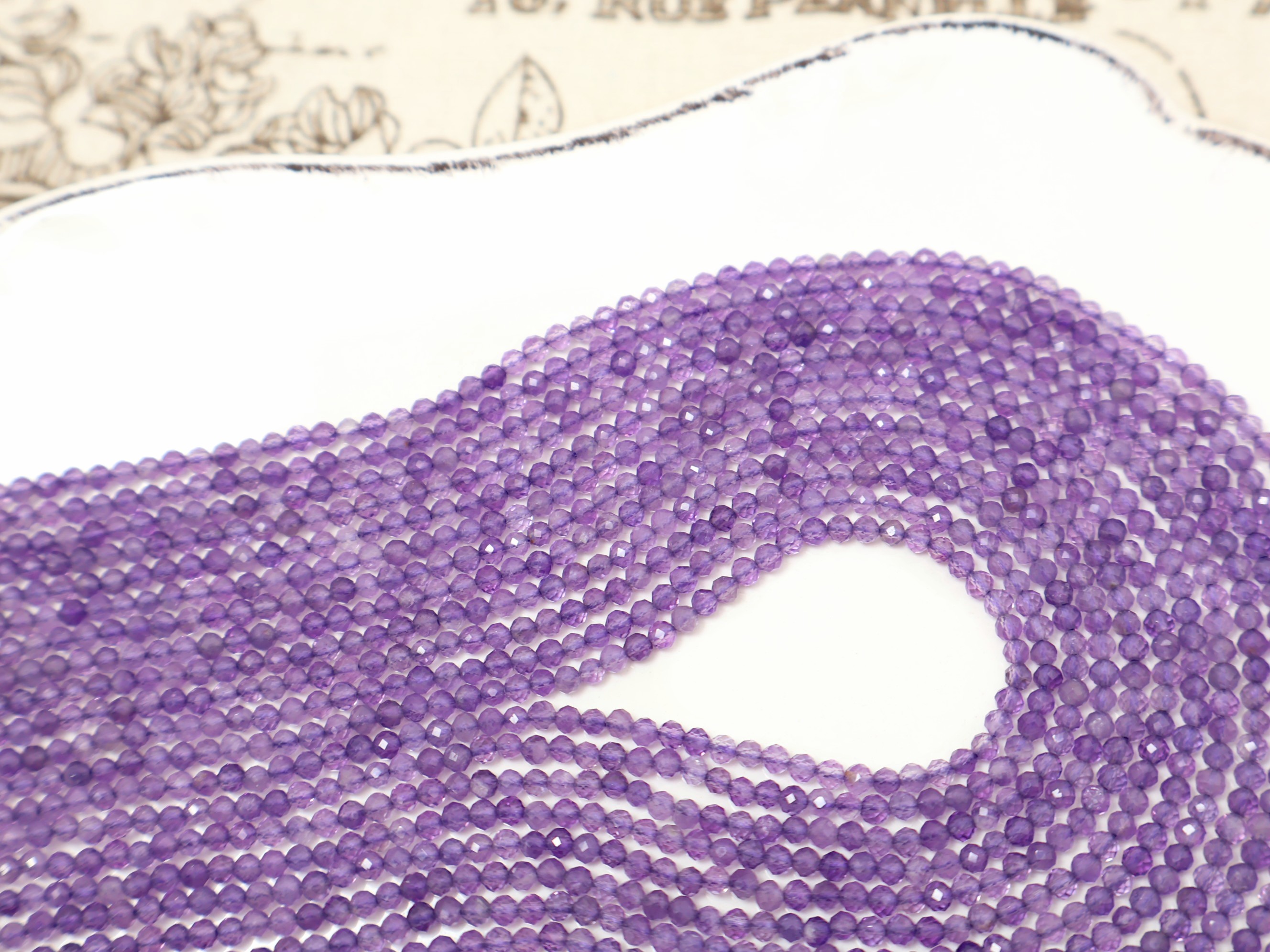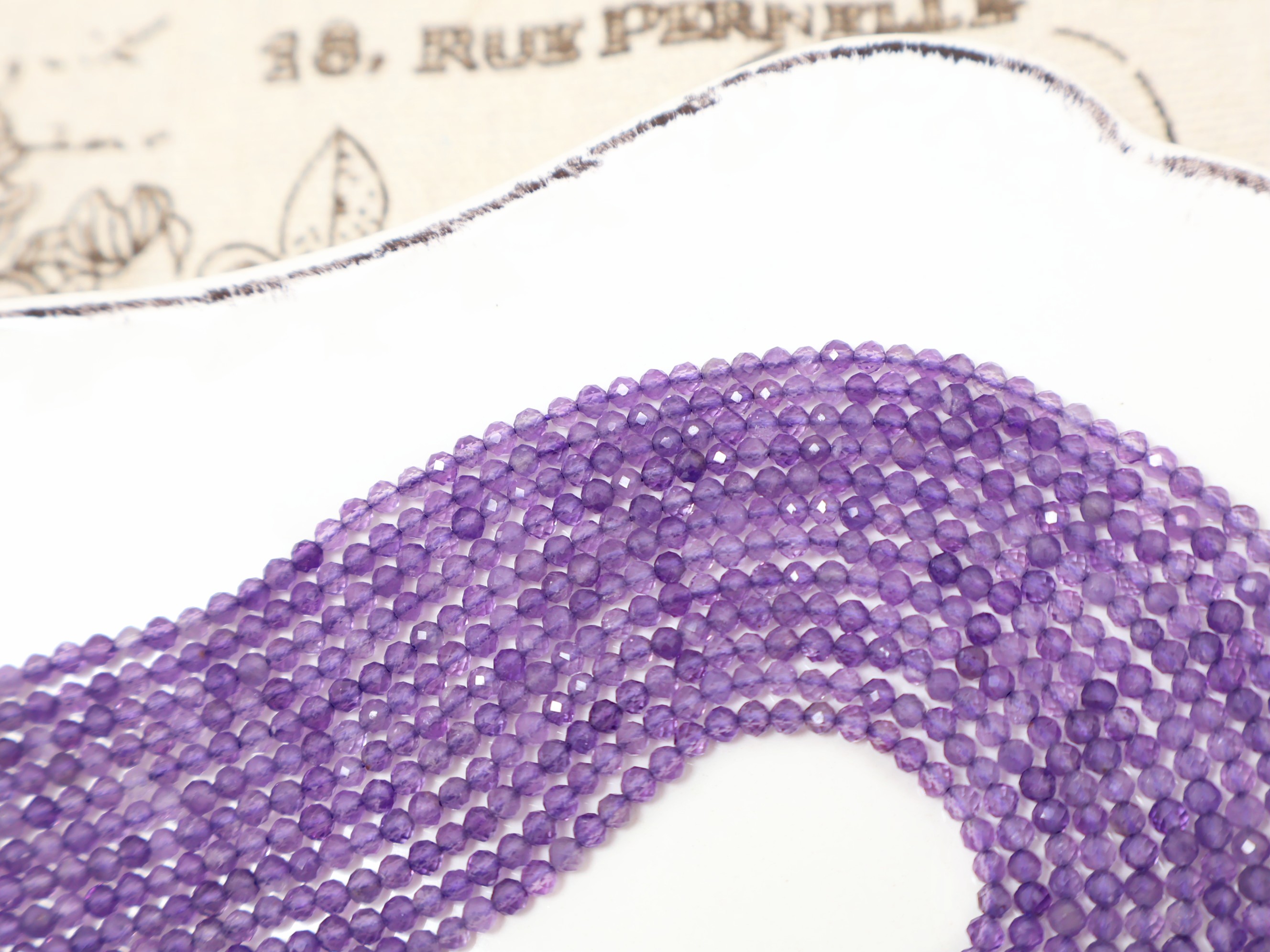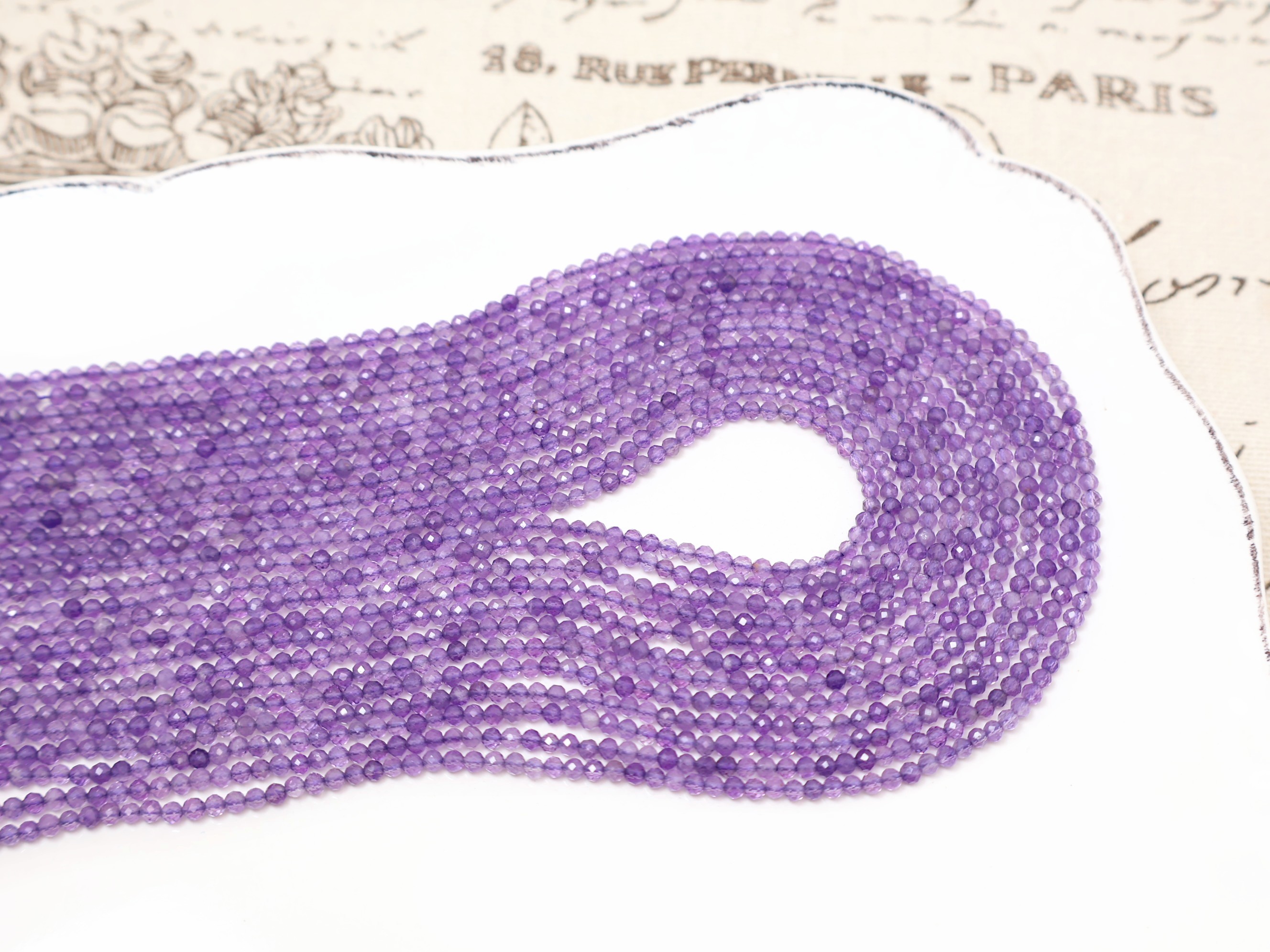 《晶格格的多寶格》天然A級巴西高透體葡萄濃紫紫水晶細小切面圓珠【H1065】約2.6-2.7mm手作串珠飾品天然石DIY