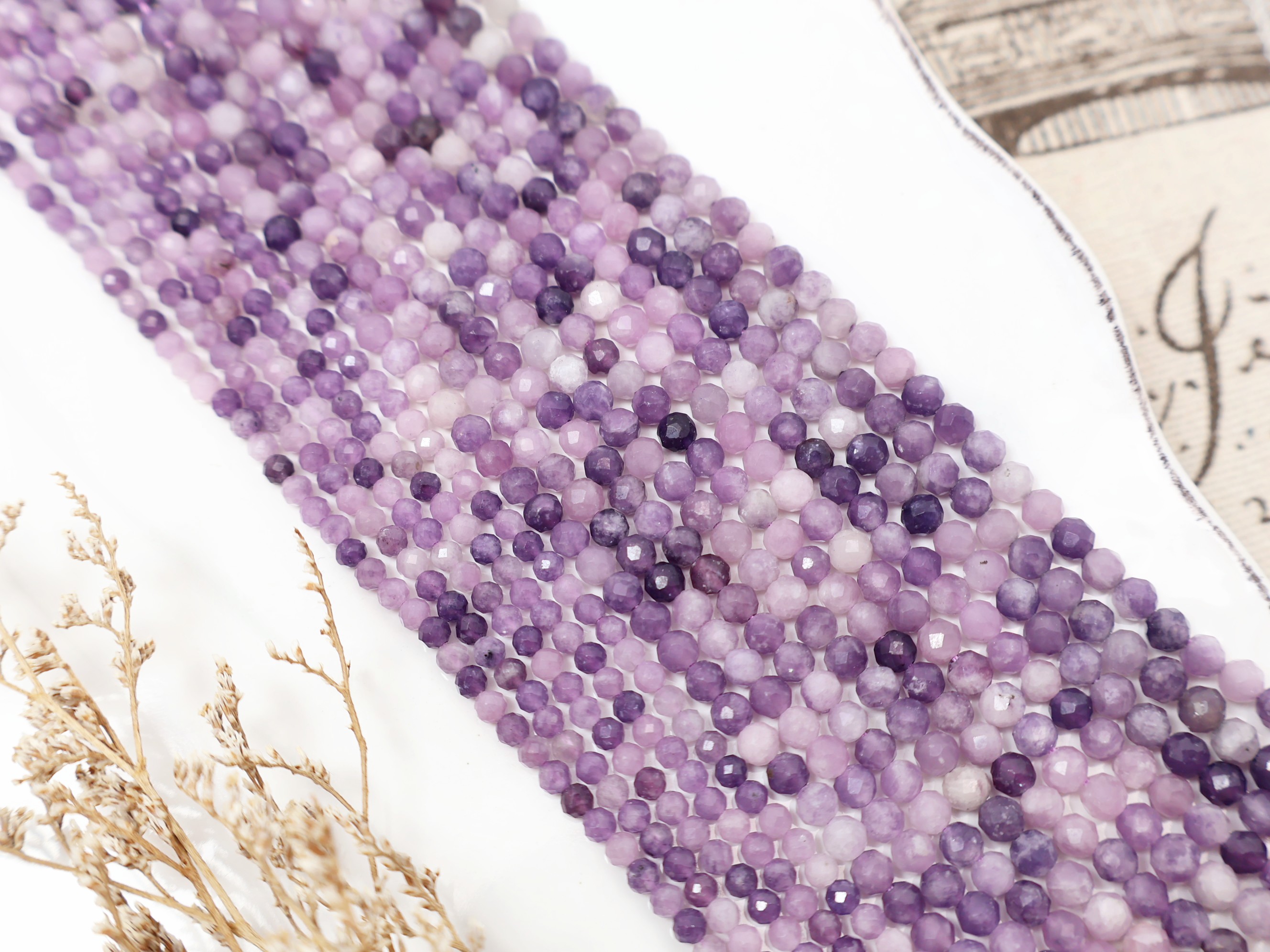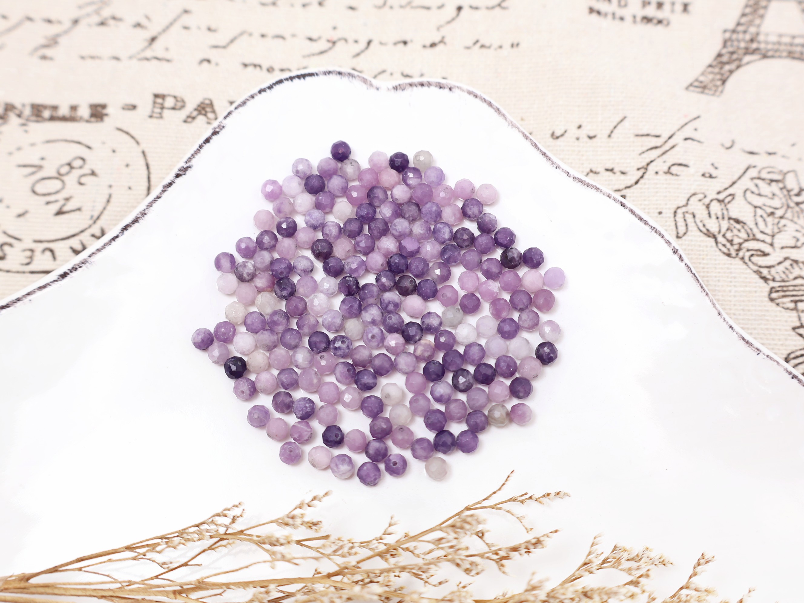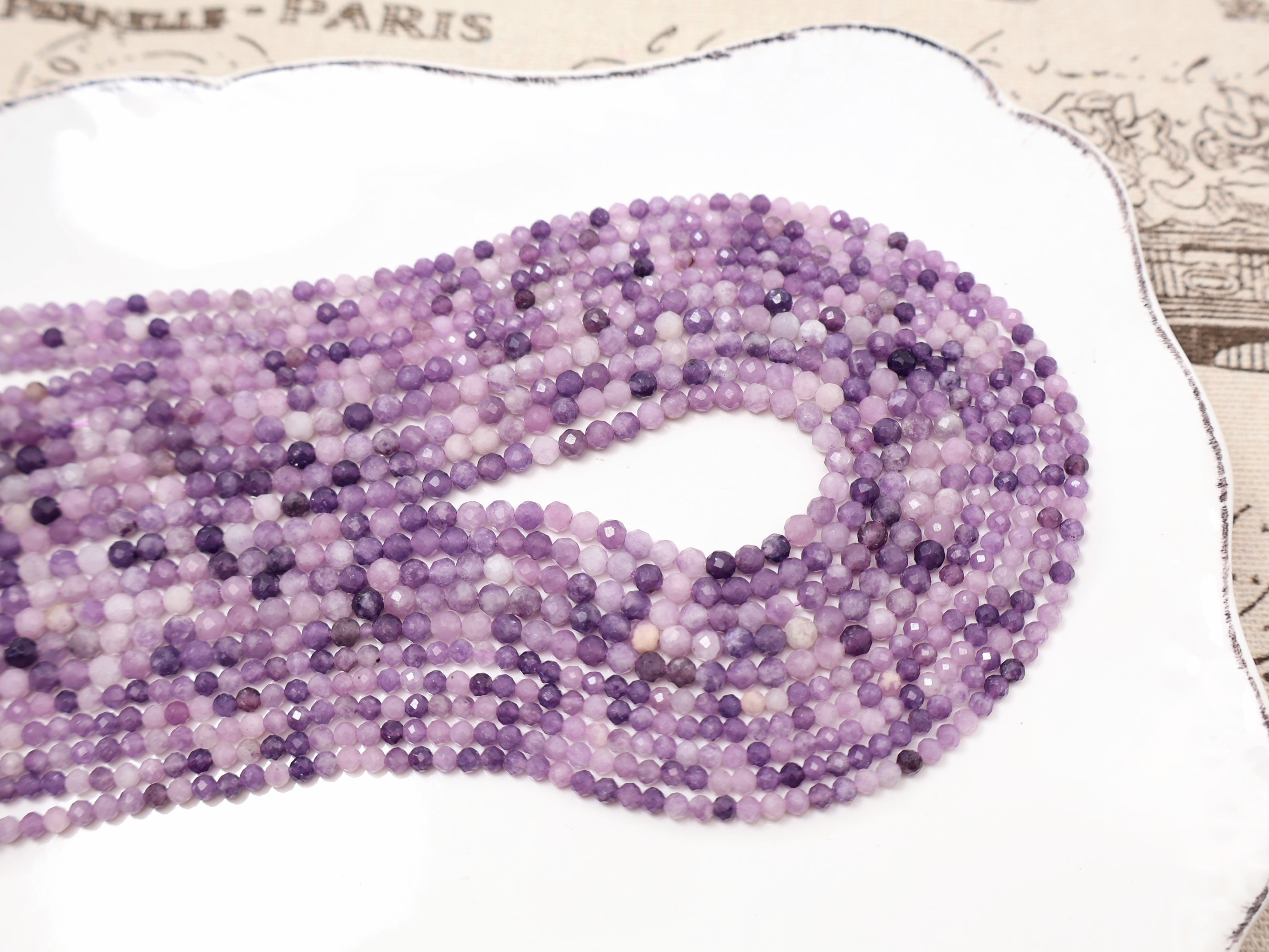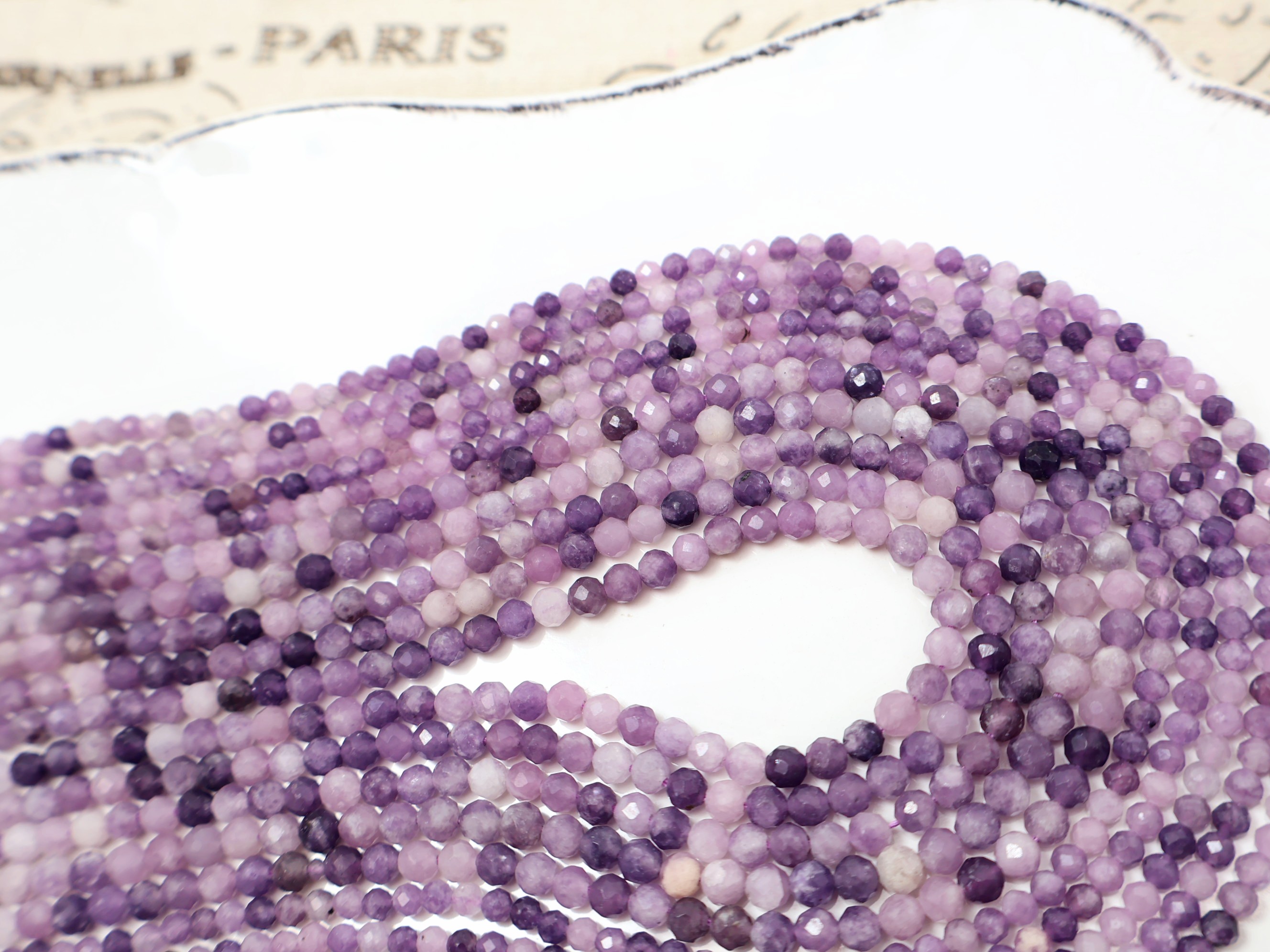《晶格格的多寶格》天然A級巴西透體濃郁粉紫鋰雲母切面圓珠【H1073.74】約3.1-4.3mm手作串珠飾品天然石DIY