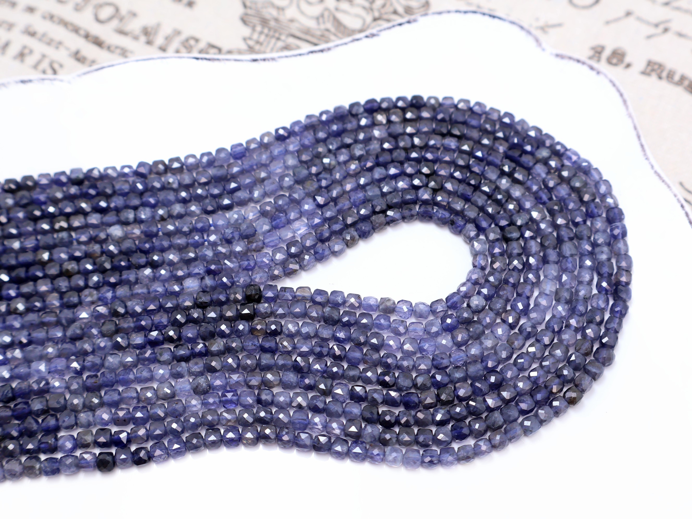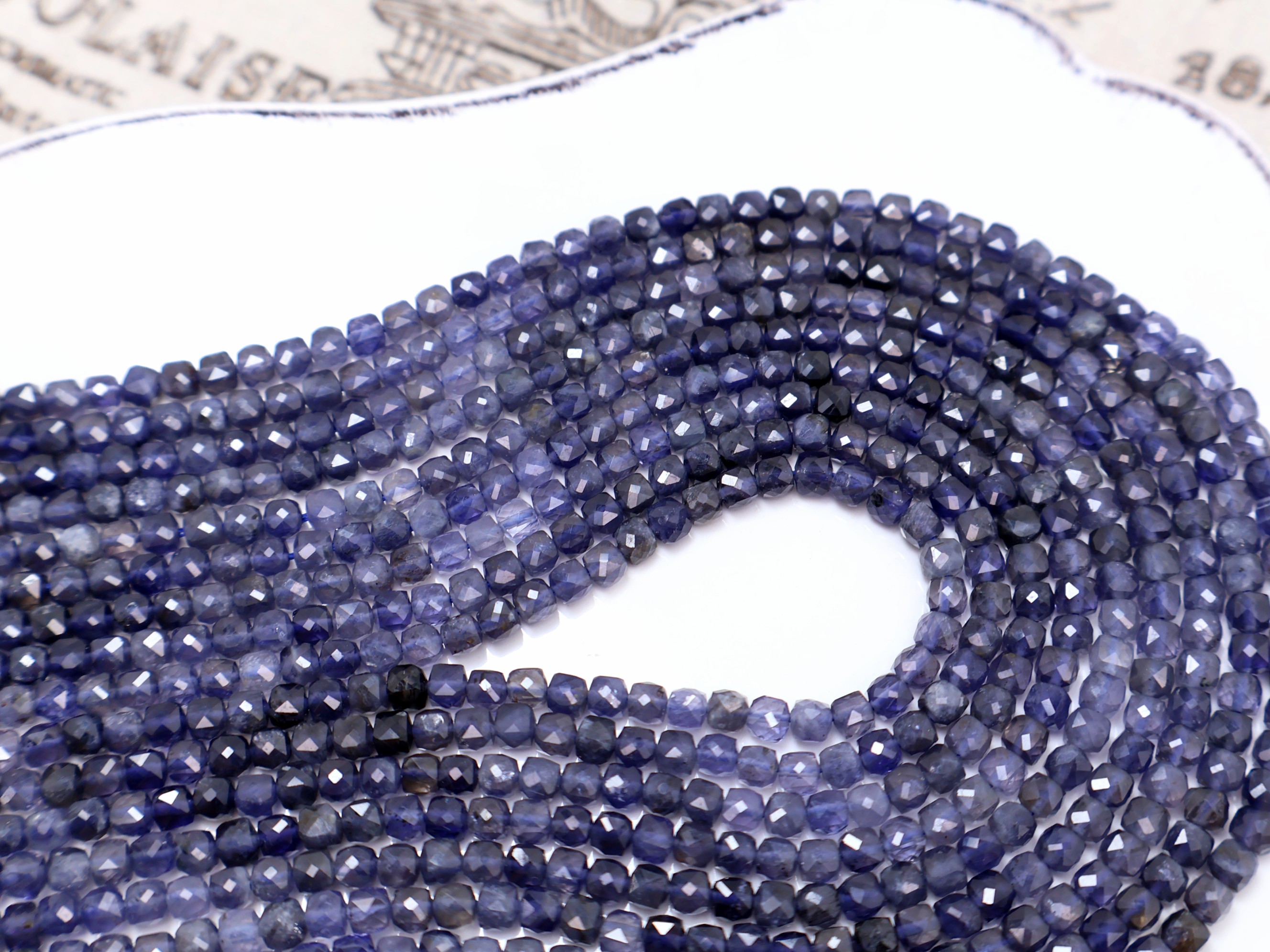 《晶格格的多寶格》天然A級斯里蘭卡高透漸變色堇青石切面方塊.方珠【H1115】約3.7-4mm手作串珠飾品天然石DIY