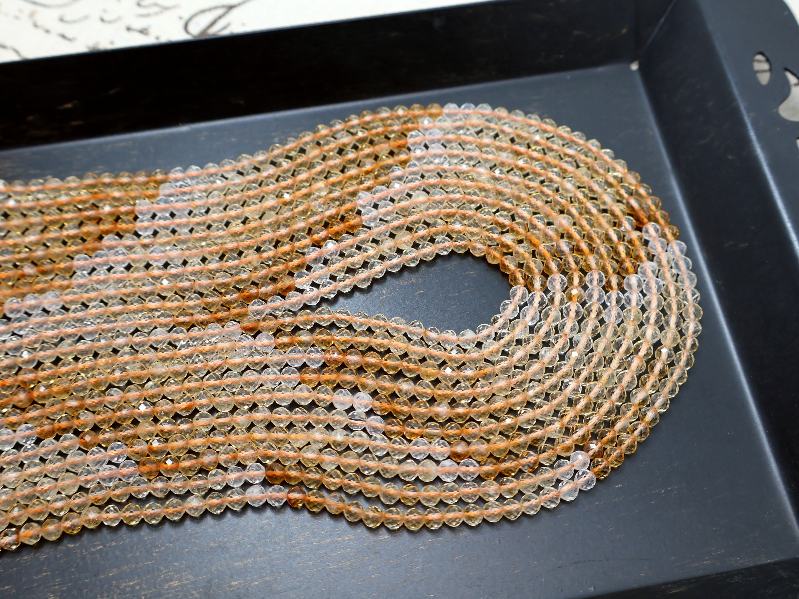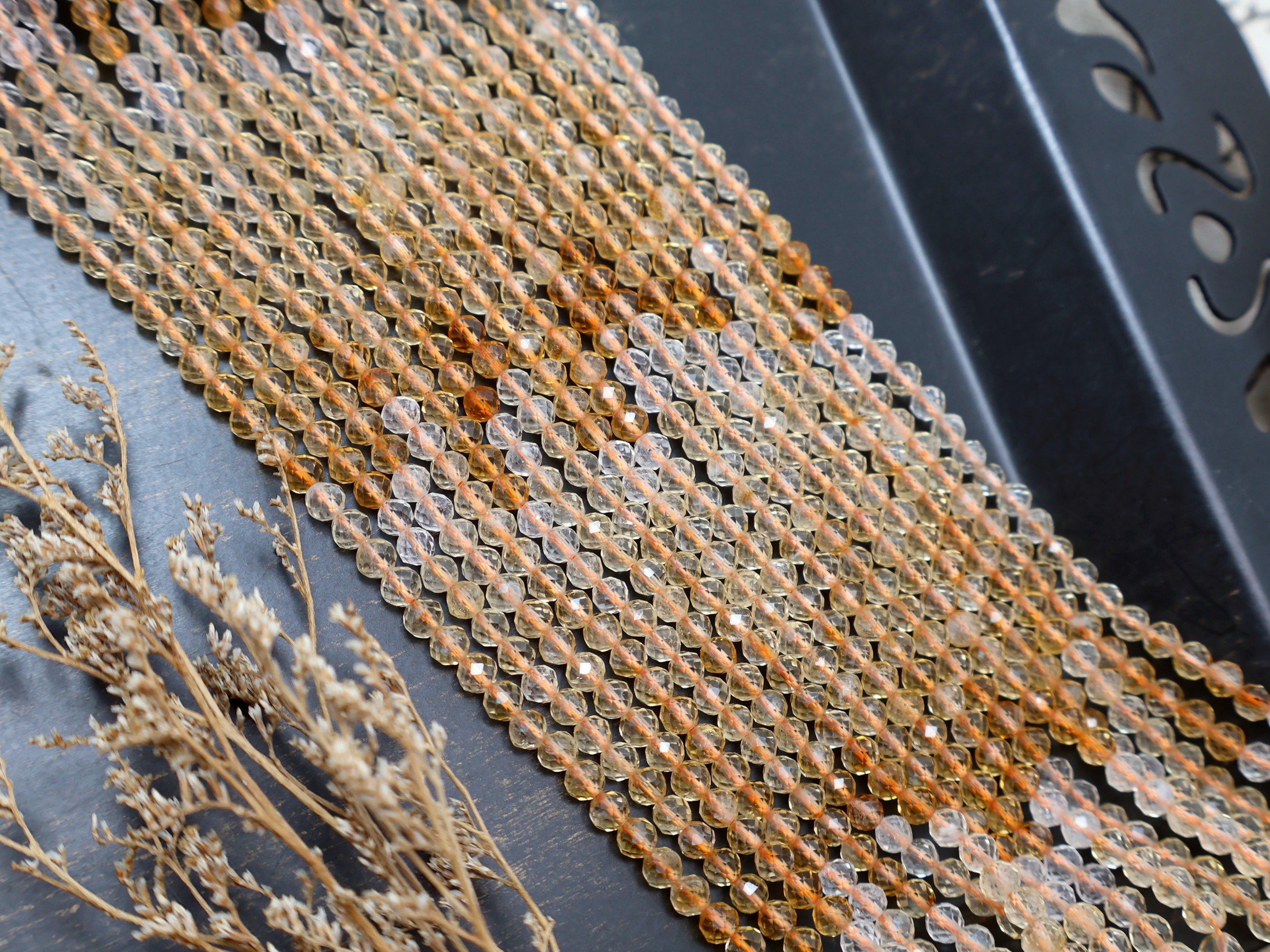 《晶格格的多寶格》收藏級!天然巴西高透體漸變色蜜糖黃水晶切面圓珠【H1235】約4-4.3mm手作串珠飾品天然石DIY