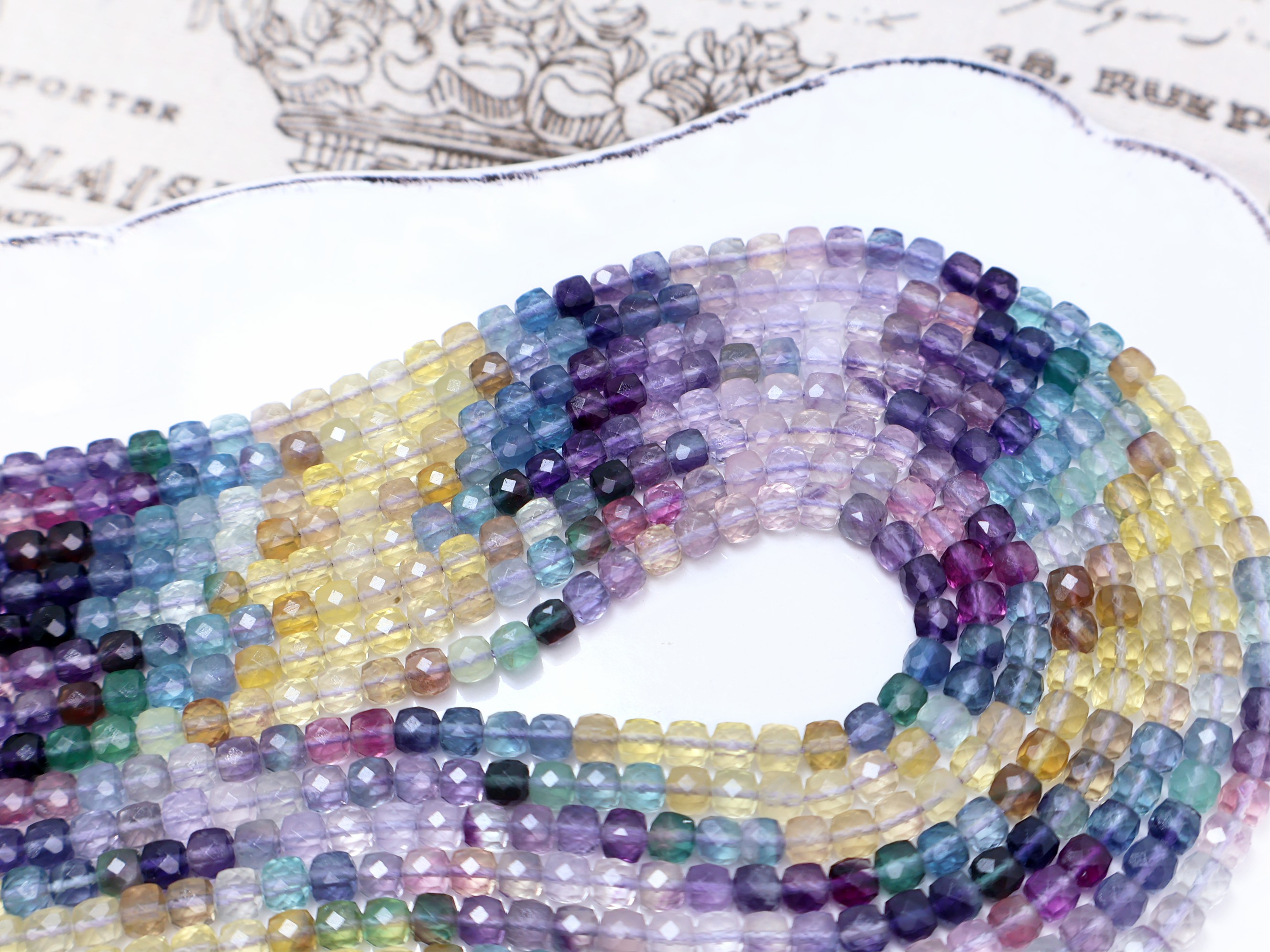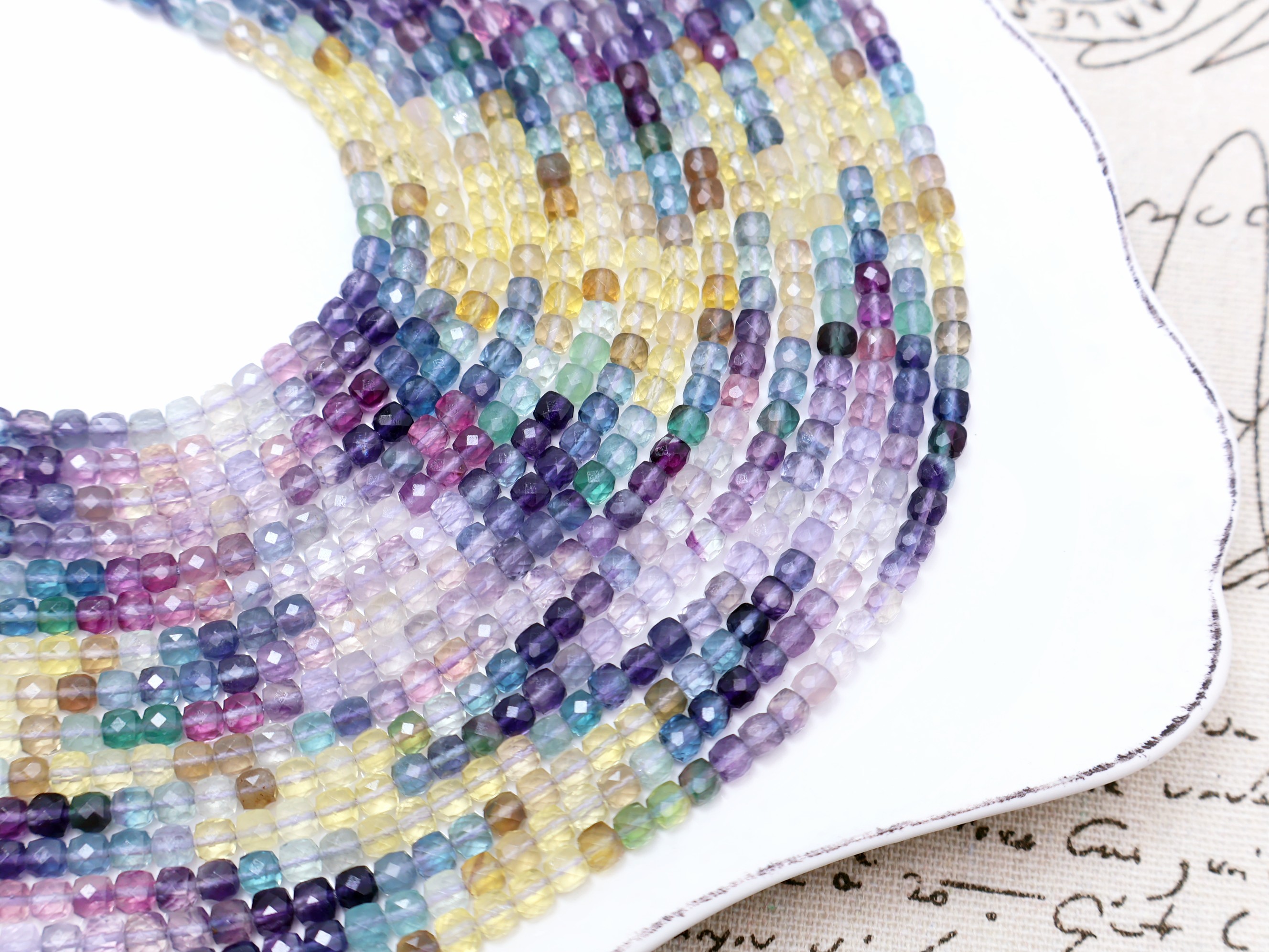 《晶格格的多寶格》天然A級美國高透體漸變色藍紫糖果彩螢石切面方形.方塊珠【H1237】約4.5-5mm手作串珠飾品天然石