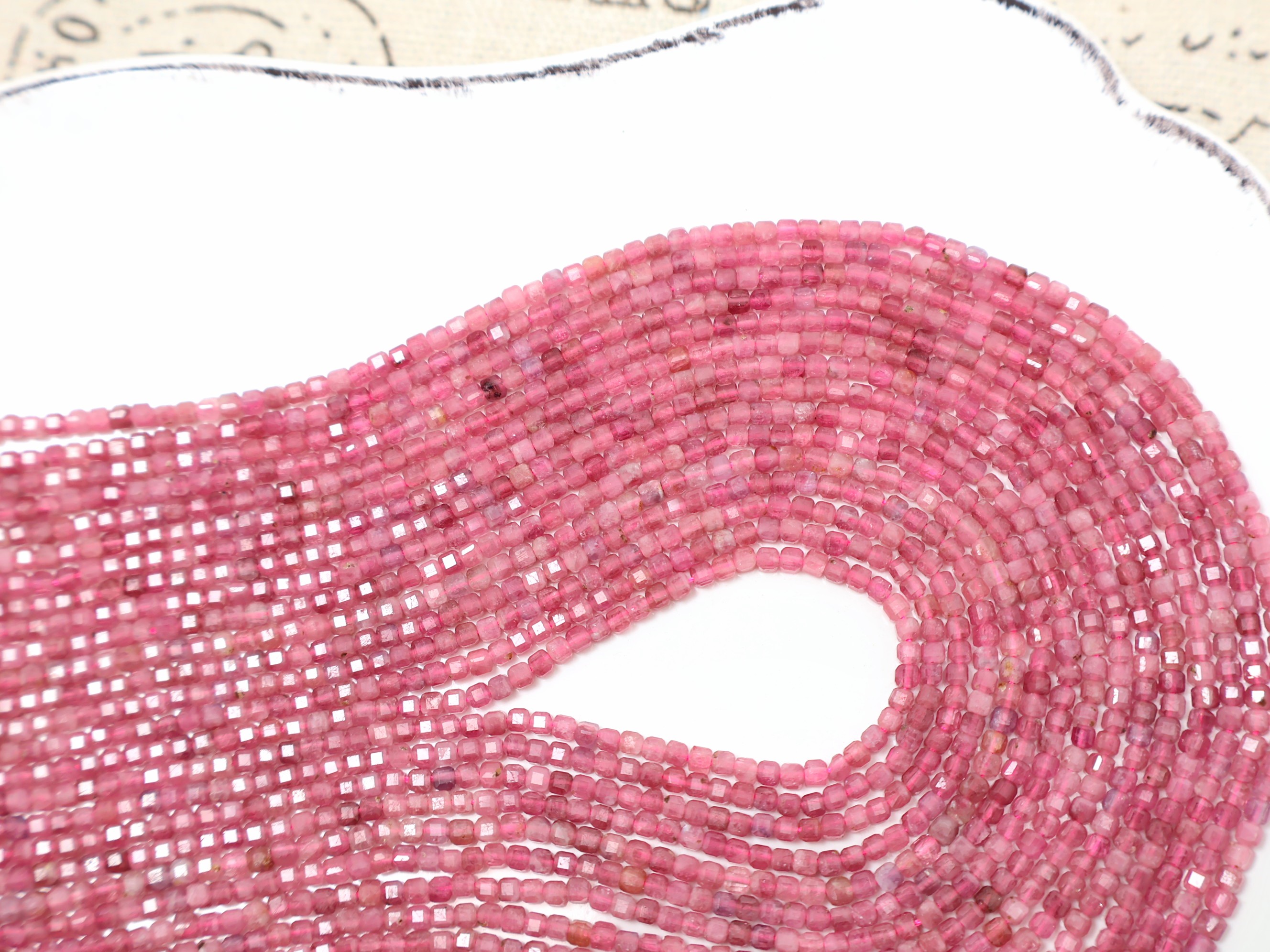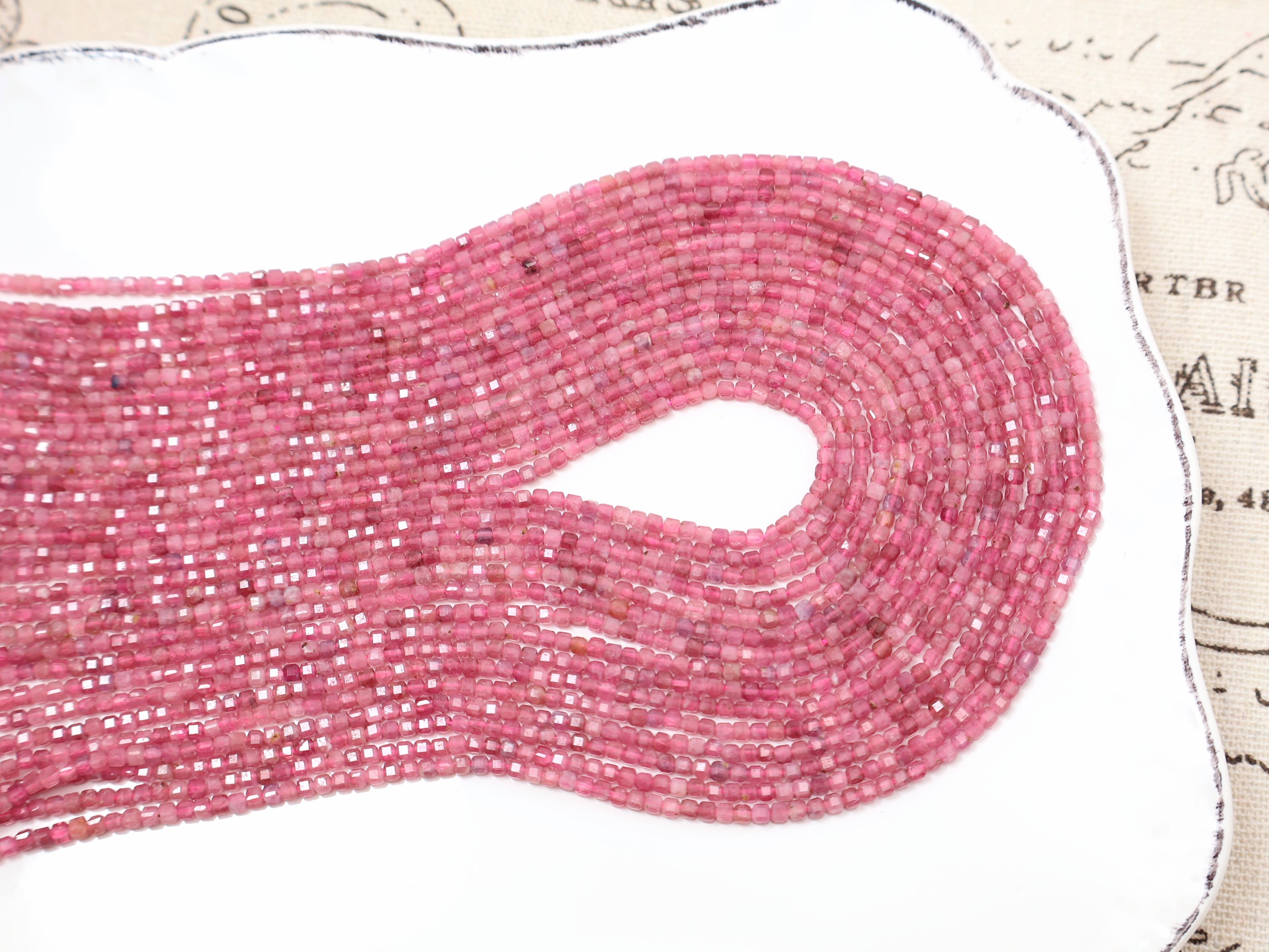 《晶格格的多寶格》天然A級巴西高透體櫻花桃粉碧璽細小切面方形.方塊珠【H1069】約2.1-2.3mm手作串珠飾品天然石