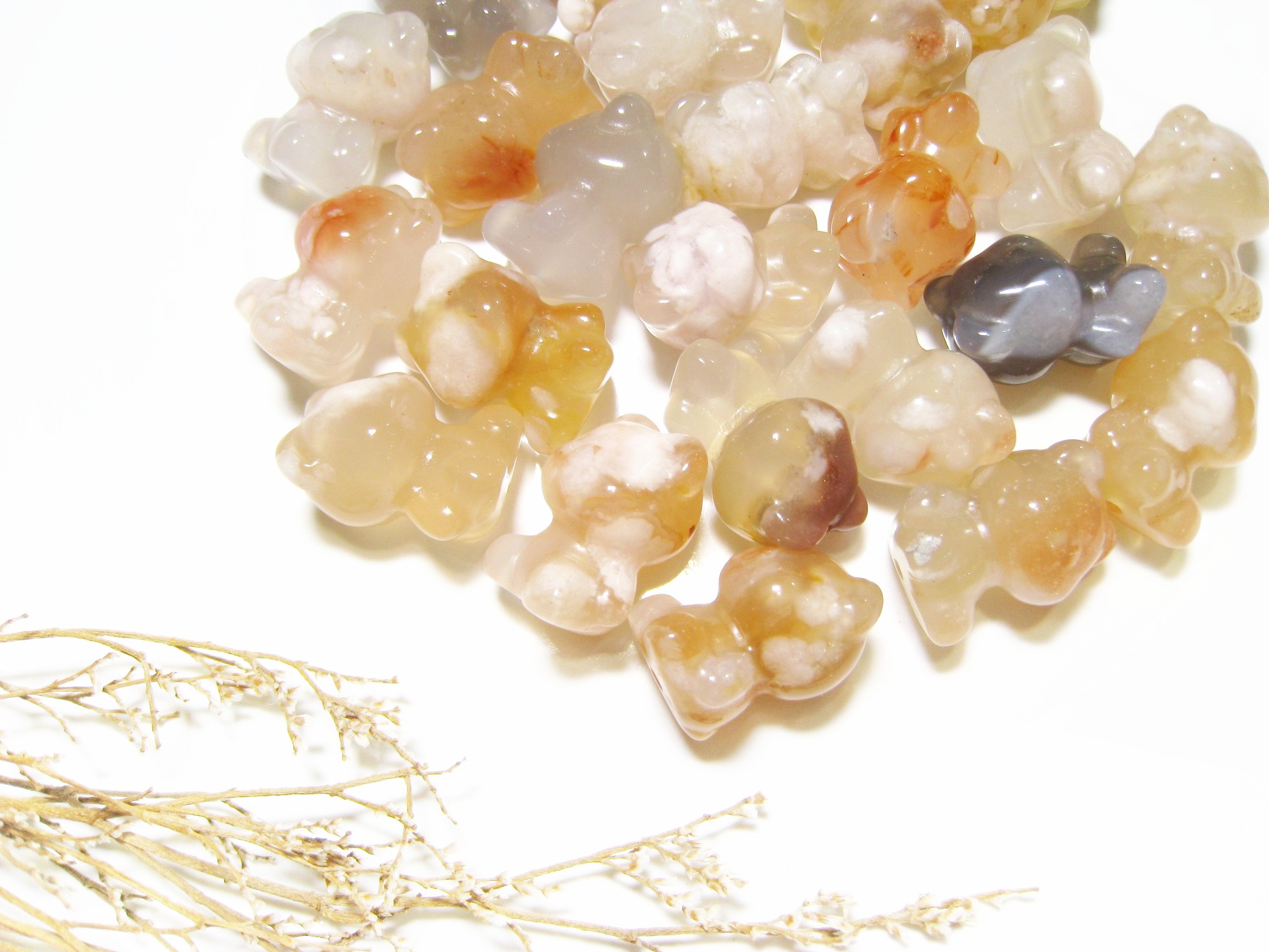 《晶格格的多寶格》天然A級馬達加斯加透體櫻花瑪瑙小熊直孔珠【RF056】高約18.5-20mm手作串珠裸石天然石.DIY