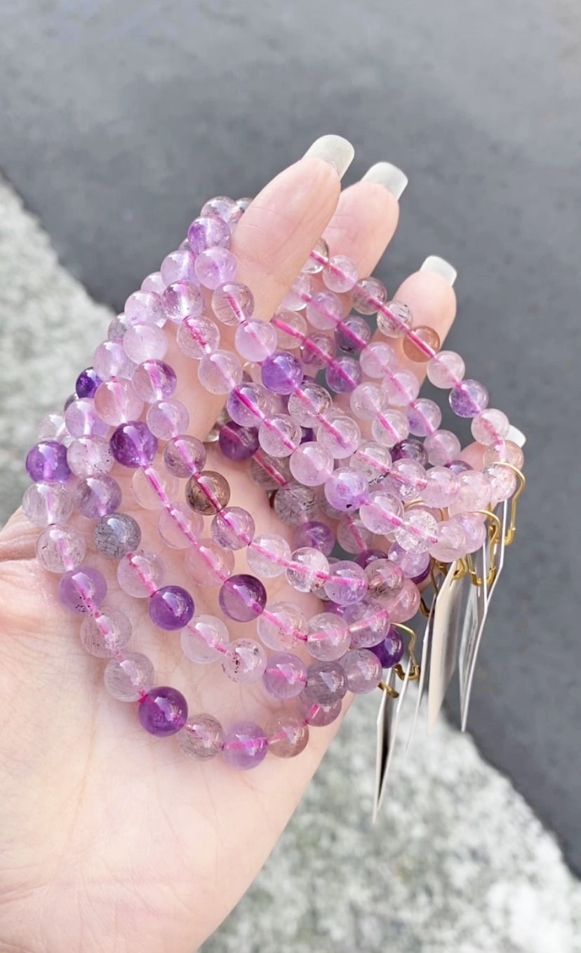 《晶格格的多寶格》天然巴西透體粉紫超級七水晶.超七手珠【A6505-A6510】約7-10mm水晶手珠#隨機出貨贈精美盒