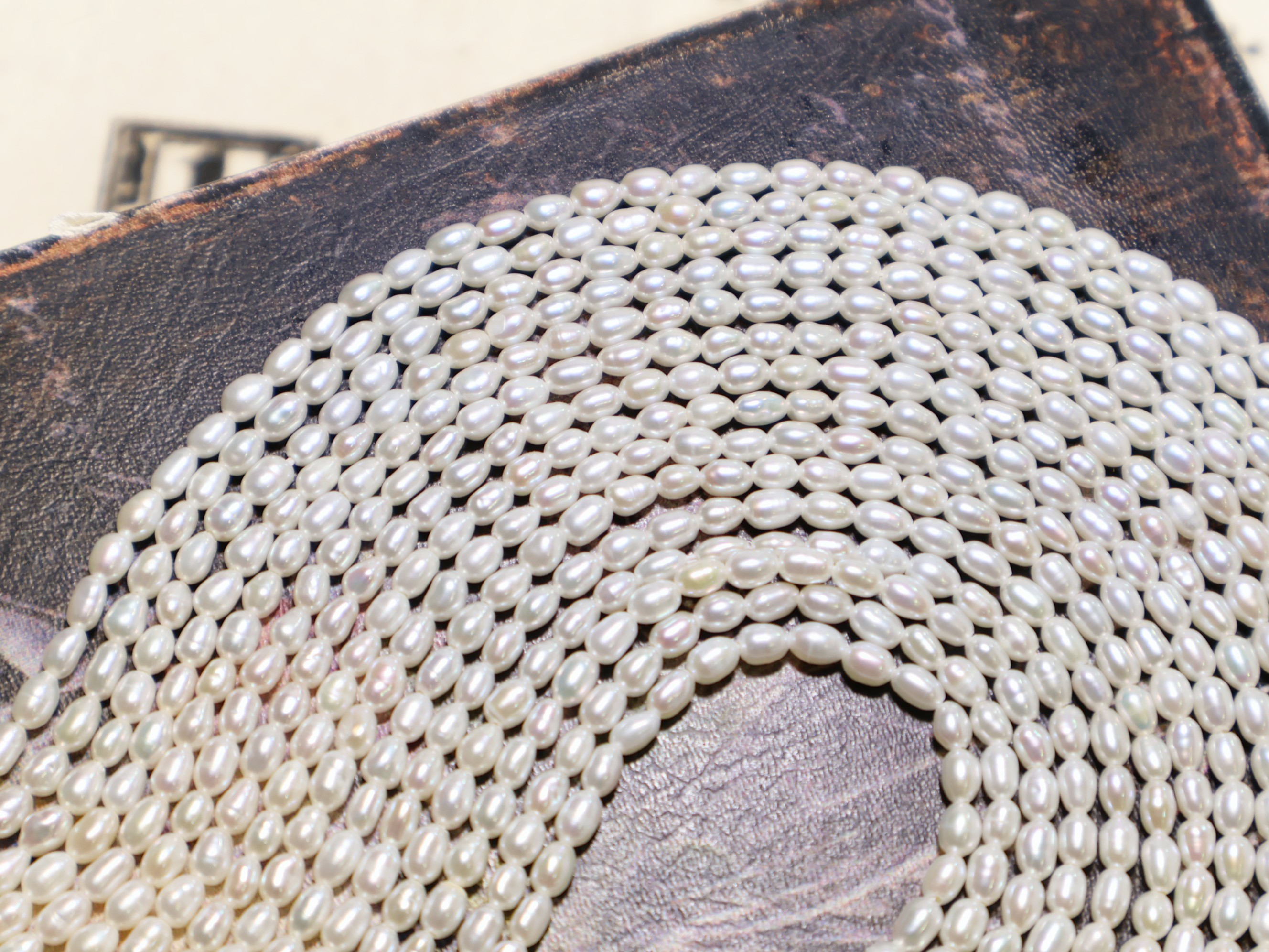 《晶格格的多寶格》收藏級!天然強光白色細小米形.米珠淡水珍珠【F2851】 約寬2.6-3.1mm手作串珠飾品 天然石